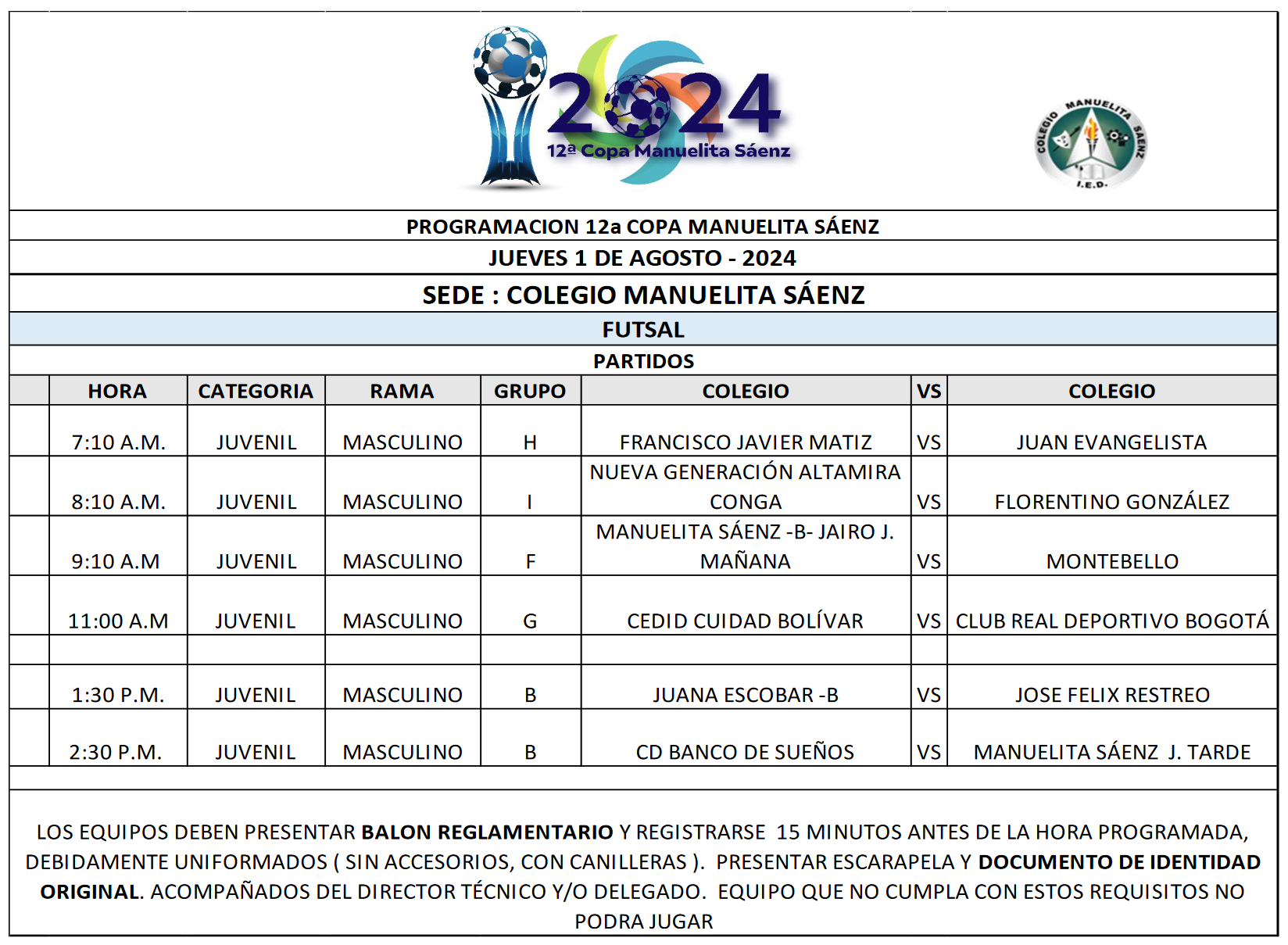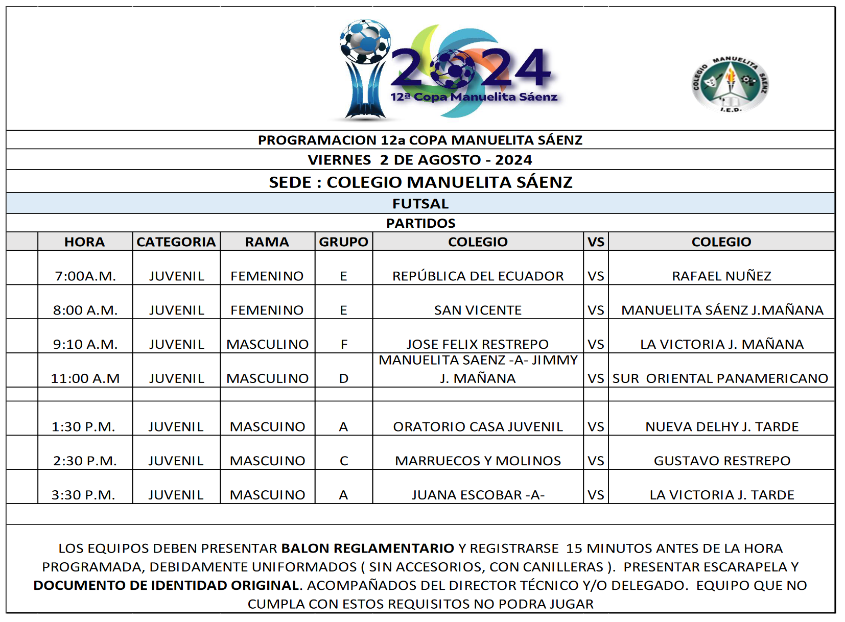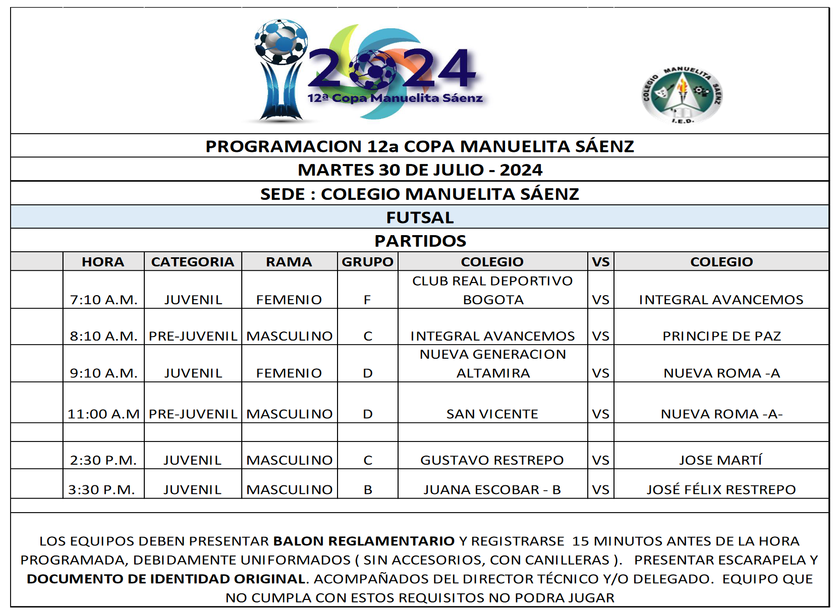 PROGRAMACIÓN 12a COPA MANUELITA SÁENZ -