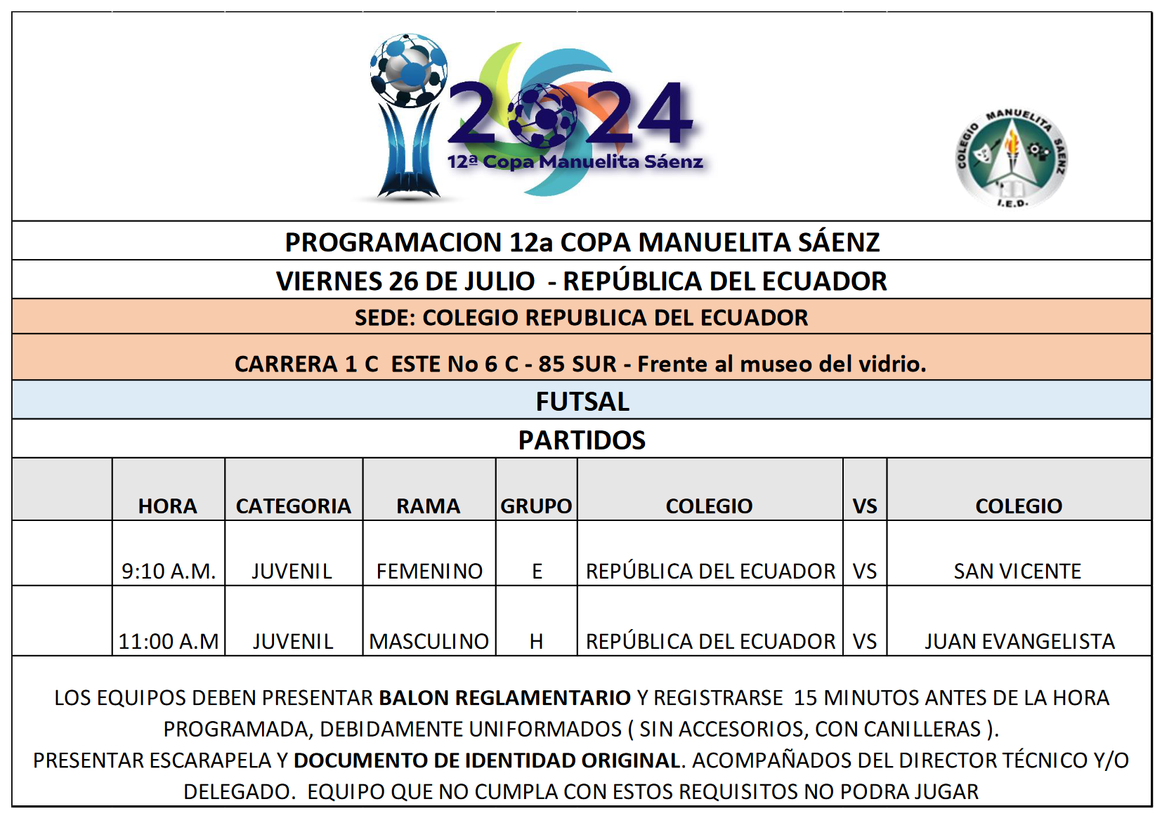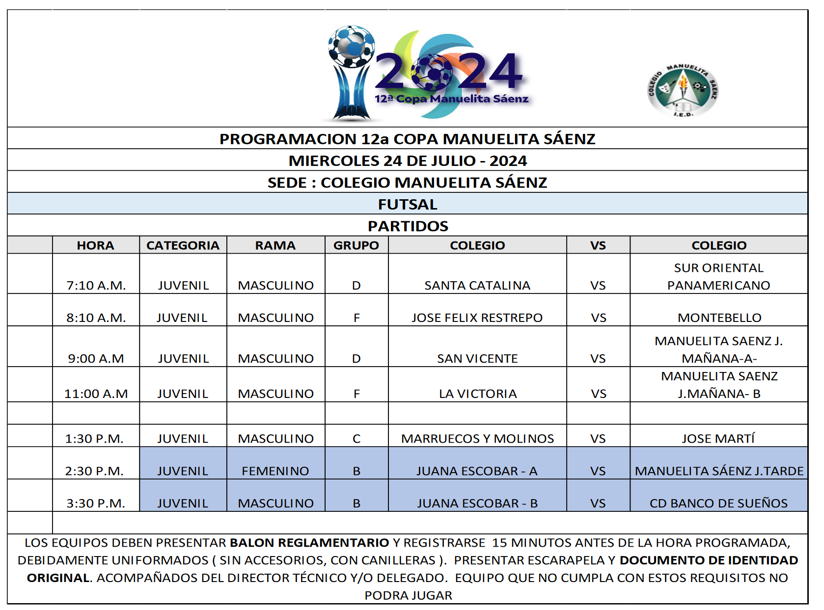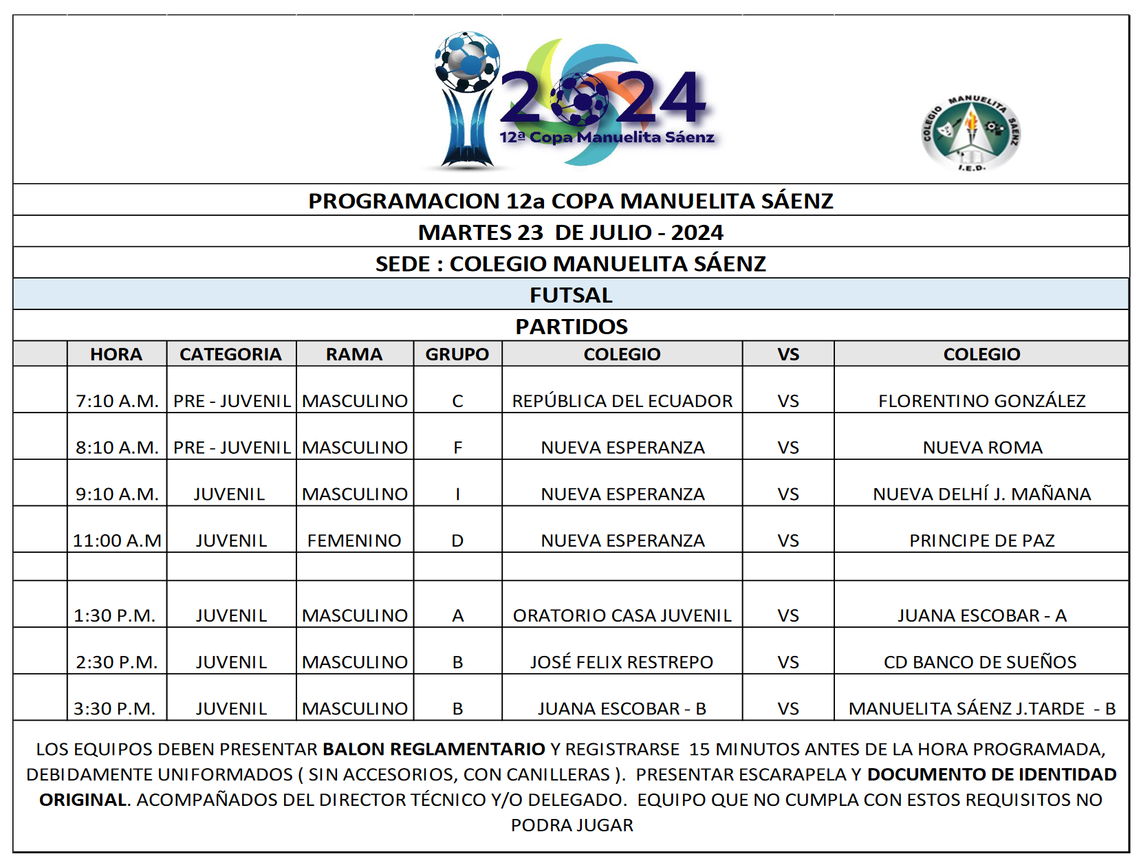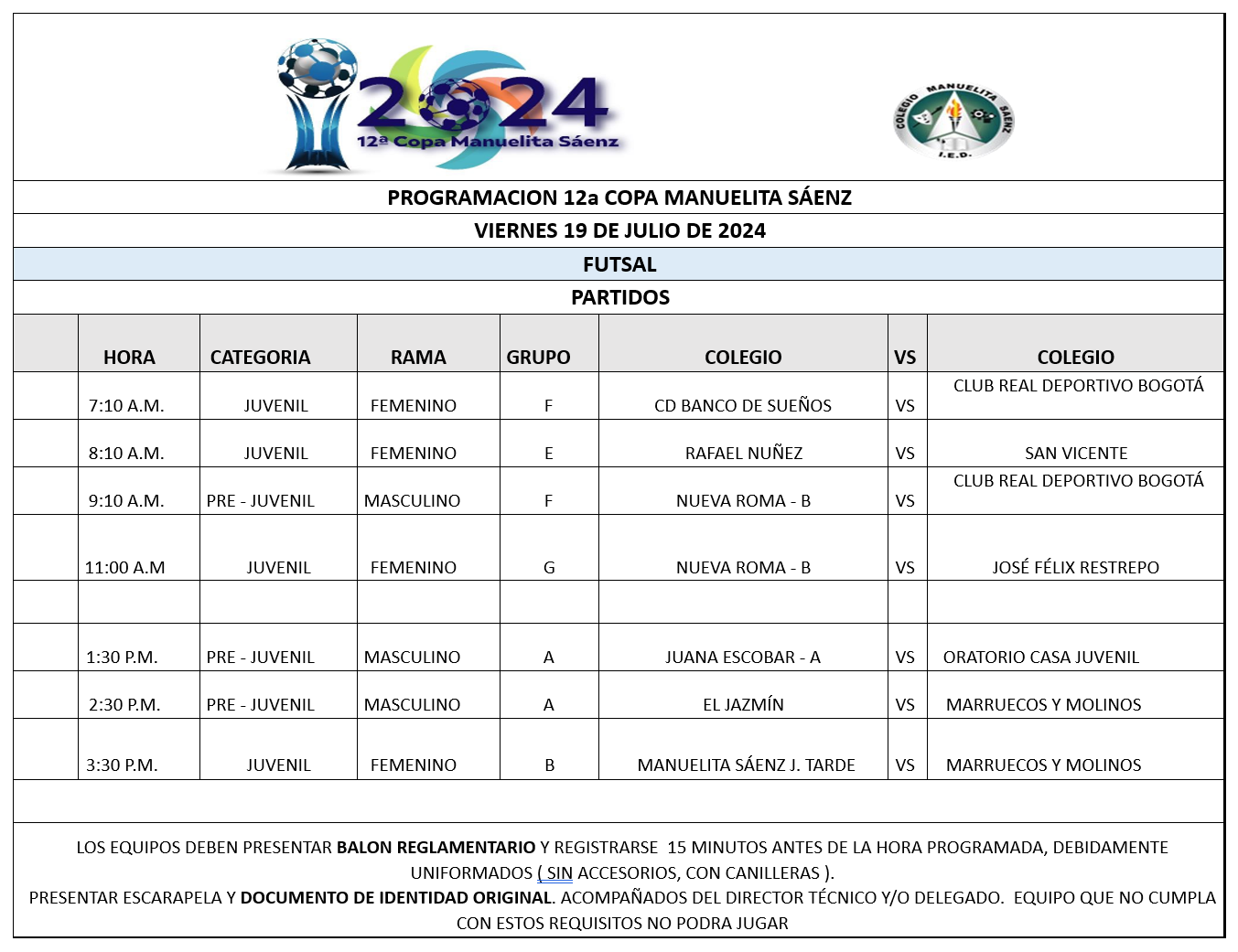 PROGRAMACIÓN 12a COPA MANUELITA SÁENZ -